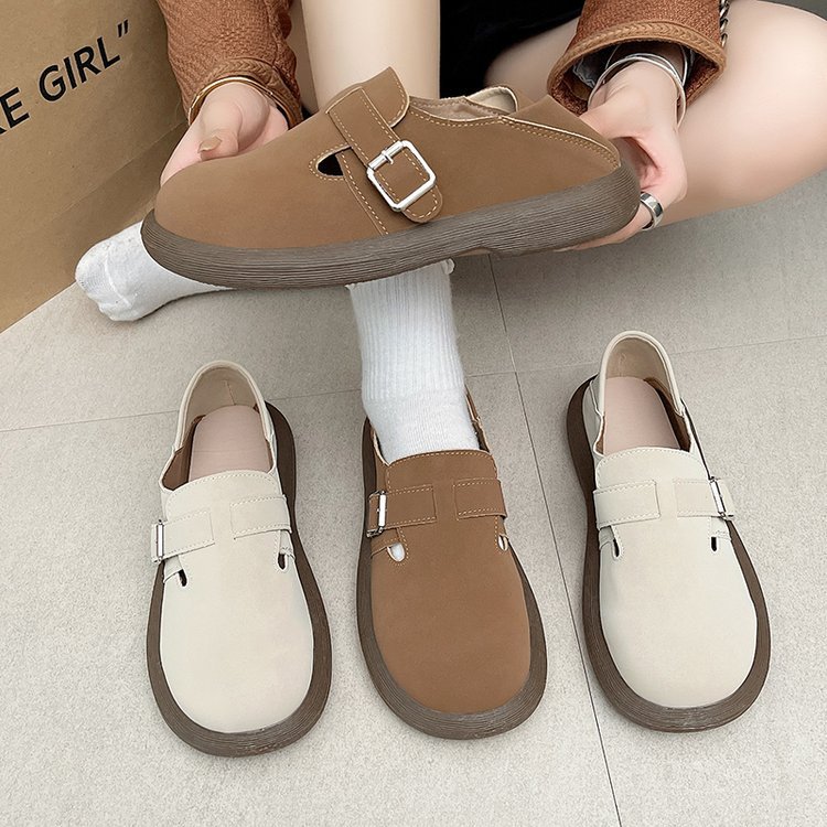 ベーケン靴の女性2024春秋の新型韓国版の丸い頭の中とファッションのベルトのバックルの怠け者の足は楽福の靴を漕いでいます。