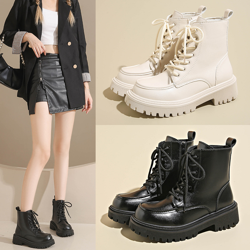 厚い底のマーティンの靴の女性の2024の新型の秋の靴の柔らかい底の英倫の風のベルベットの皮の靴は街の小さいショートブーツを揚げます。