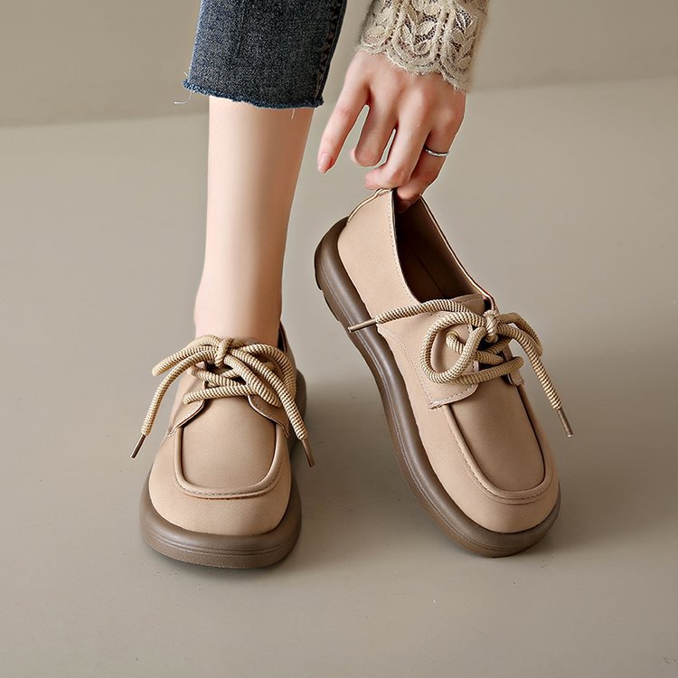 レトロな柔らかい底の柔らかい皮の快適なカジュアルシューズ2024年春の新しい森の女性のひもの布の布の靴の女性の靴