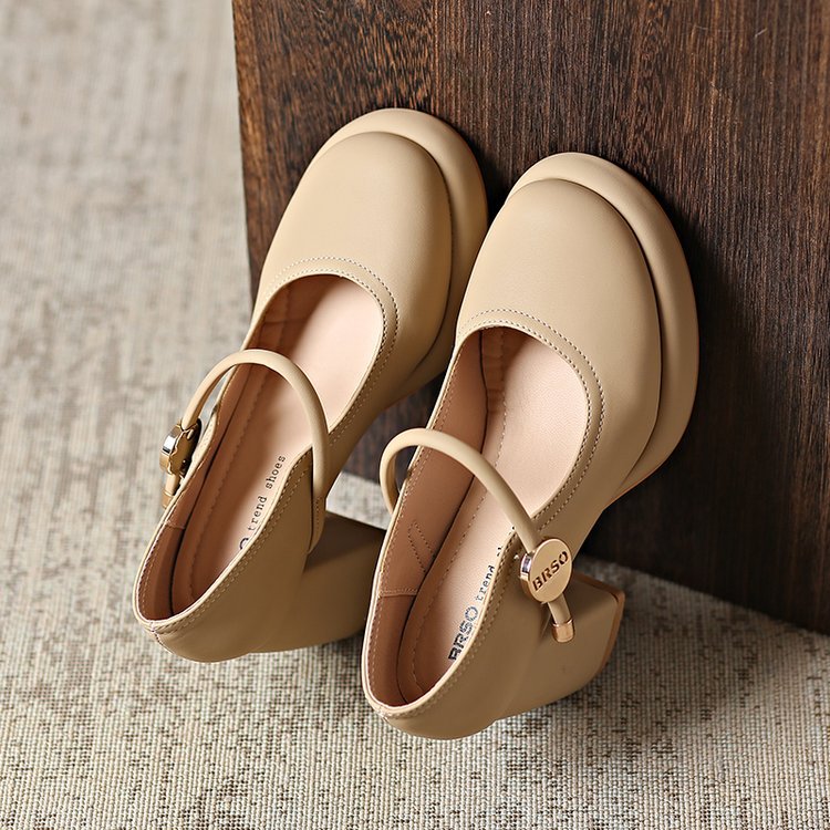 大きいサイズの女性靴2024春の新しい学院の風の太さとファッションの丸い頭の百合の1字はメアリーの珍の靴のa 12を持ちます。