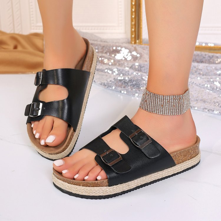 欧米のクロスボーダー2024夏の対外貿易の新型の厚い底の1字の純色の丸い頭のベルトは女性の大きいサイズのサンダルを掛けます。