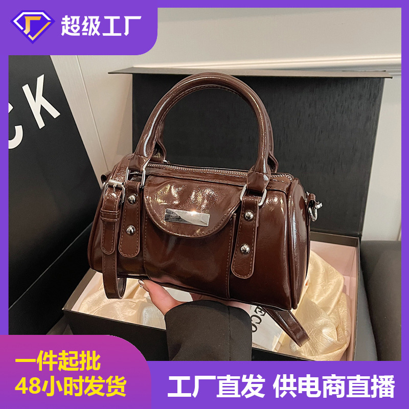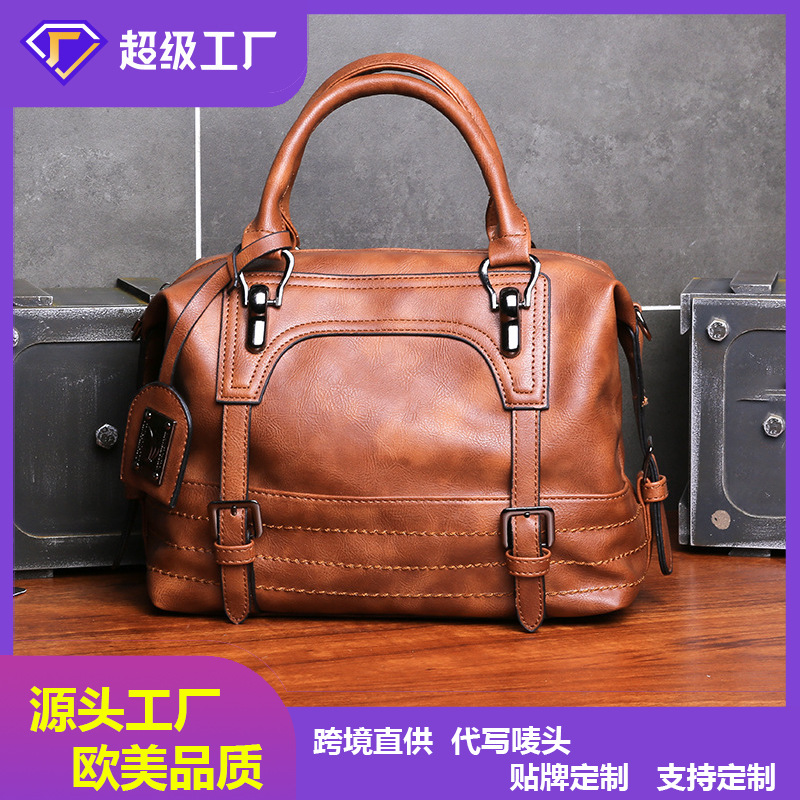 メーカー直送クロスボーダー大容量本革質感バッグ油蝋皮ボストンレディースハンドバッグシングルショルダーバッグ