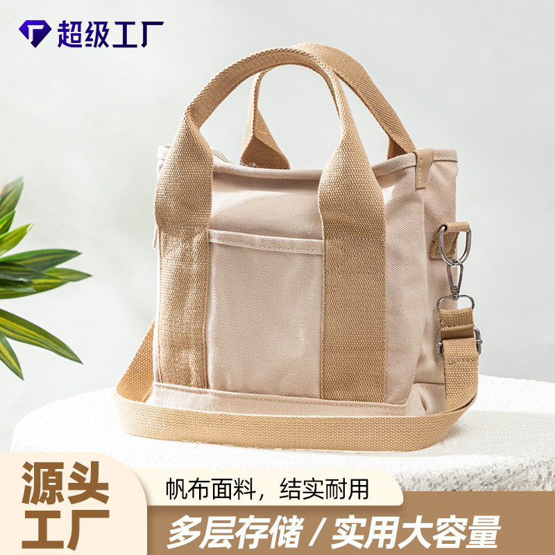 新しい日本のキャンバスバッグ、ファッショナブルでシンプル、大容量のハンドバッグ、日常の通勤に多用途、ランチバッグ、女性用の小さなスクエアバッグ