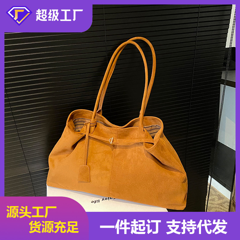 国境を越えたスエードのバッグ女性秋の新しいファッション行純色シングルバッグカジュアル大容量通勤バッグ