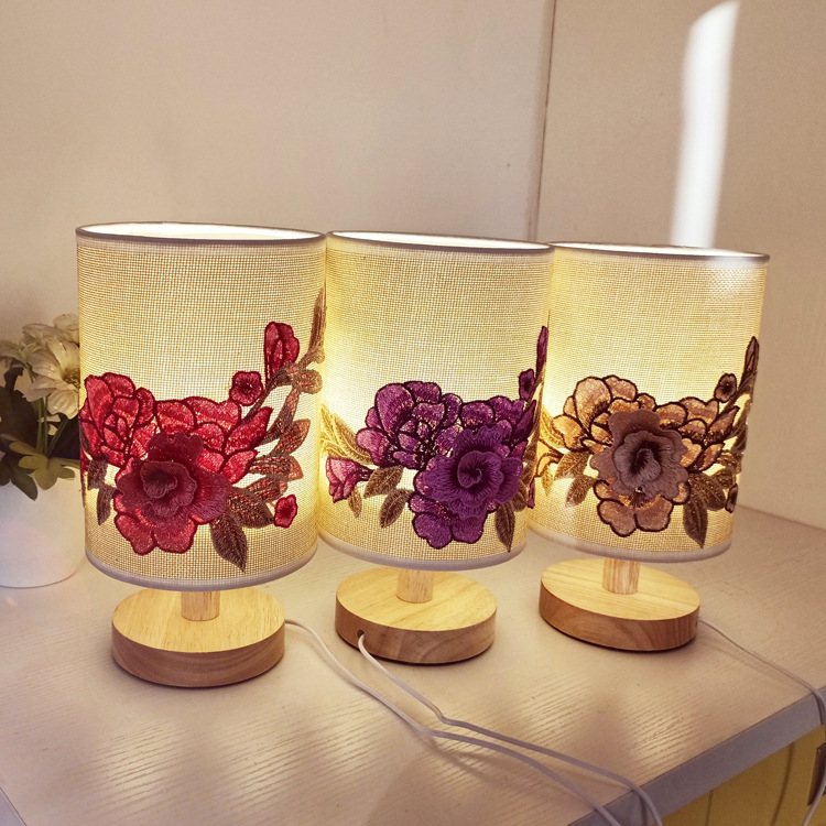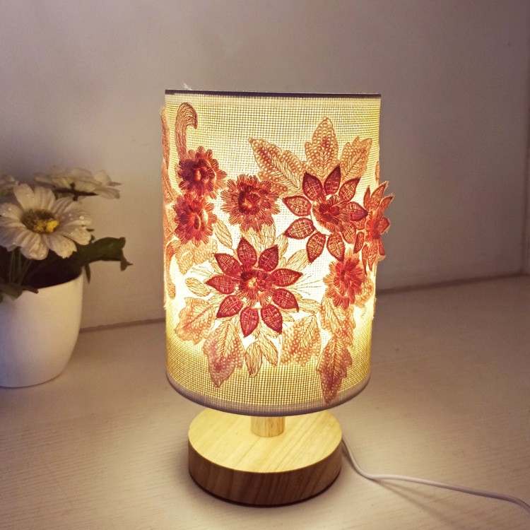 Usb立体花布芸電気スタンド新奇抜家庭装飾led小夜灯移動式ベッドヘッドランプMZ-004