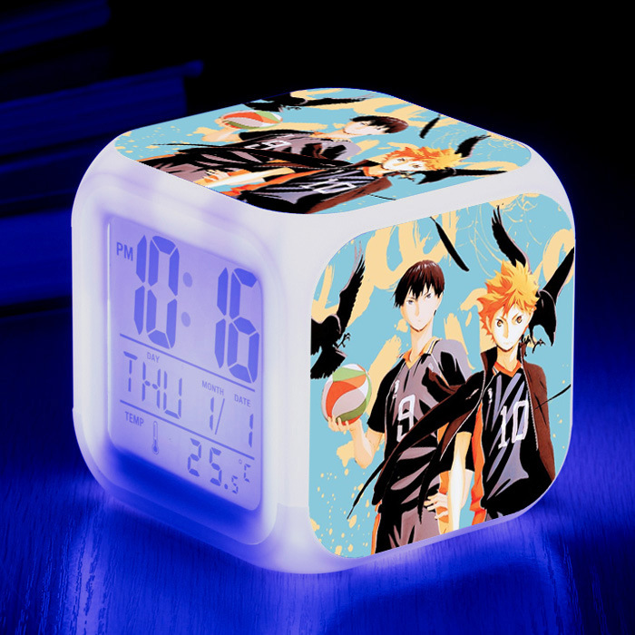 国境を越えたソースバレーボール少年日漫漫目覚まし時計led七彩変色四方鐘大画面デジタル学生電子時計