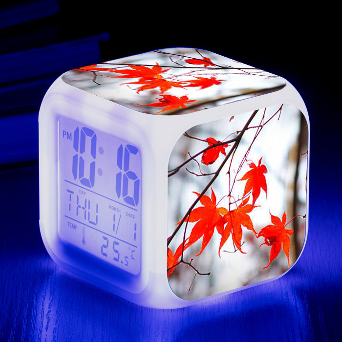 国境を越えた対外貿易ソースのカエデの葉図目覚まし時計の新アイデア大画面デジタル多機能四方七彩電子時計