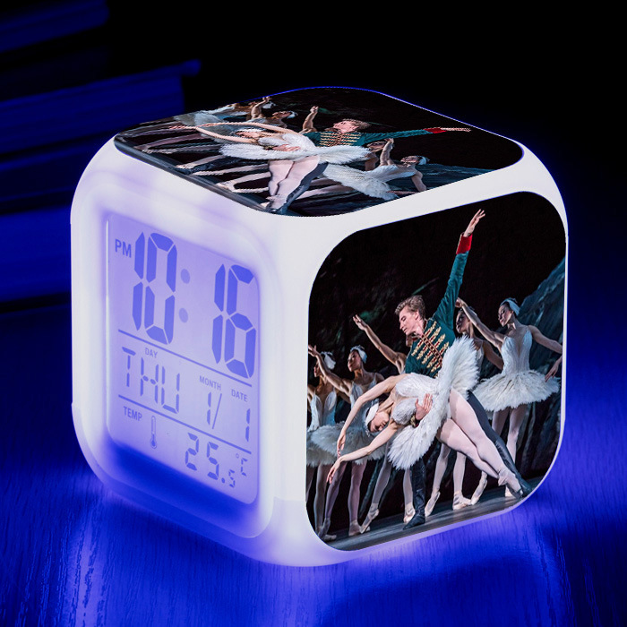 国境を越えたソースballetダンスアニメ目覚まし時計led七彩変色四方時計学生プレゼント創造目覚まし時計