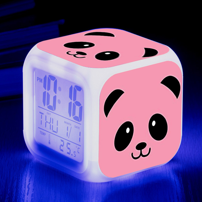 国境を越えたパンダの目覚まし時計led七彩変色四方時計学生の創造的な大画面デジタル電子時計