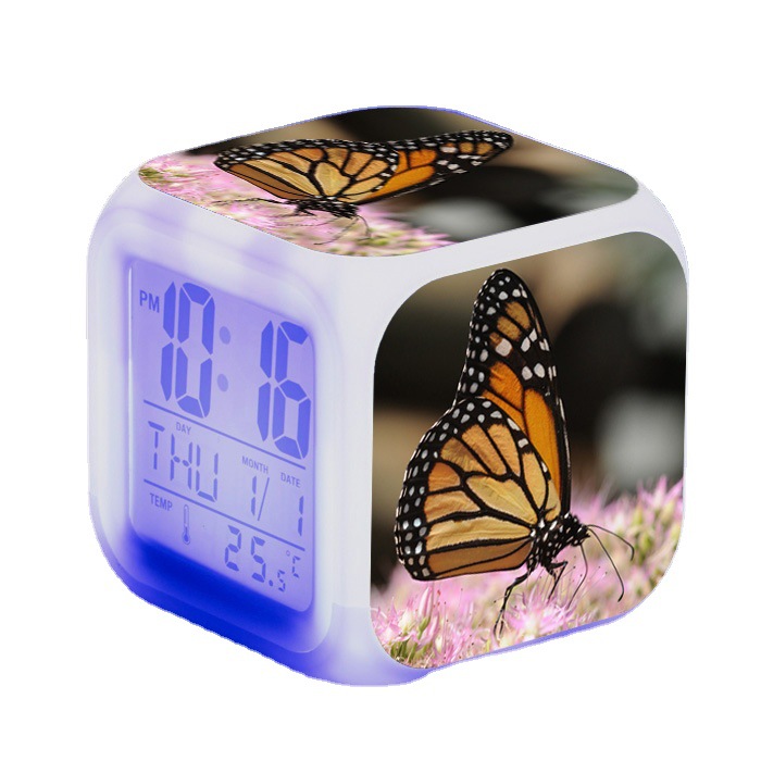 クロスボーダー昆虫模様蝶目覚まし時計led変色四方時計学生プレゼント七彩クリエイティブ目覚まし時計