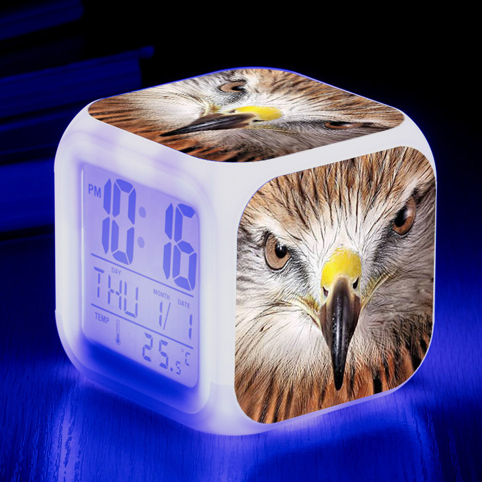 国境を越えたソース鷹マップ目覚まし時計led七彩変色四方鐘児童学生プレゼント創意小騒ぎ
