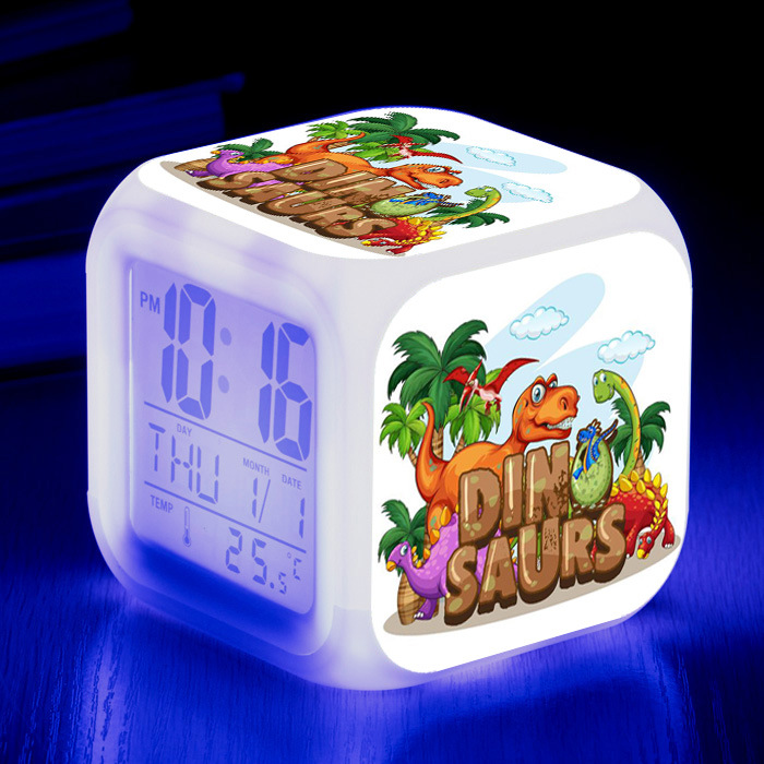 外国貿易ソースdinosaurs恐竜目覚まし時計led七彩変色四方鐘児童プレゼント創造目覚まし時計