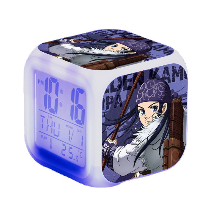 国境を越えた日本アニメ黄金神威目覚まし時計led七彩変色四方鐘創意学生電子時計