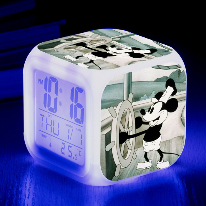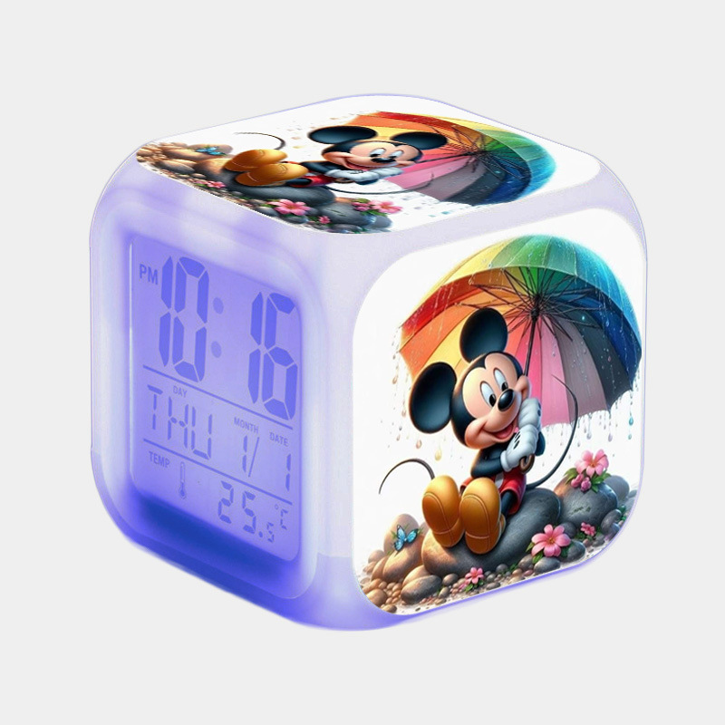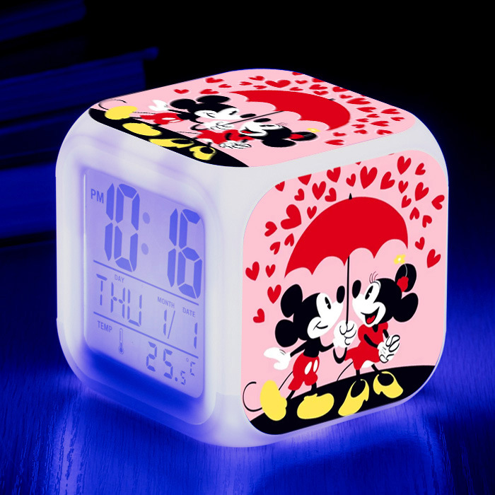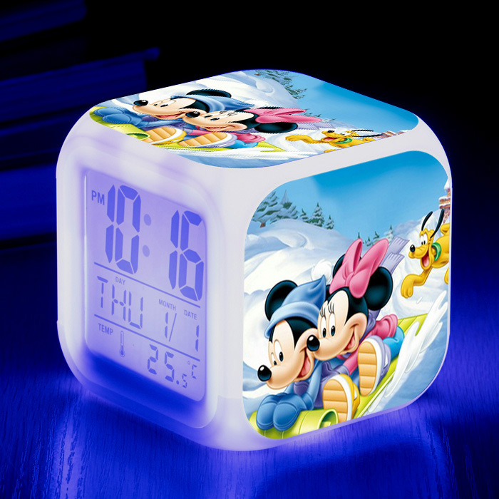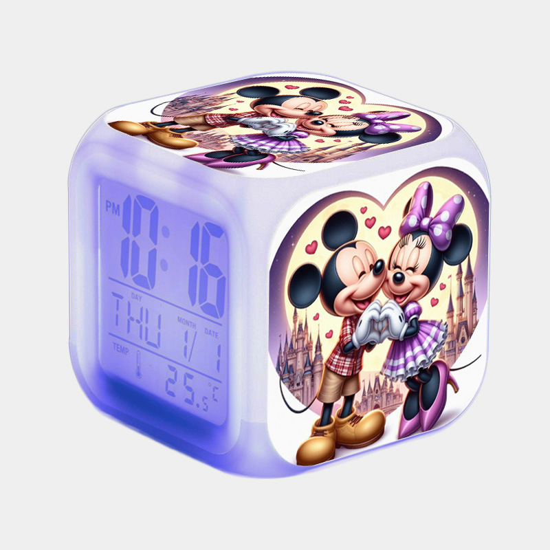 37-60号ミッキーマウスミシュミニー大画面デジタル七彩目覚まし時計クリエイティブマップ変色四方時計