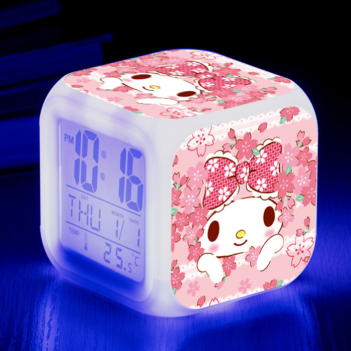 サンリオ周辺のメロディーアニメledカラフルな色の大画面デジタルクリエイティブ目覚まし時計を提供しています。