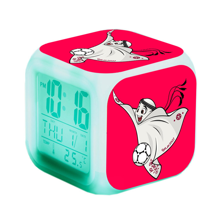 国境を越えた対外貿易ソースカタールサッカーワールドカップマスコット七彩目覚まし時計創意静音デスクトップ電子時計