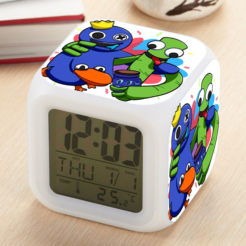 虹の友人たちrainbow friends七彩四方鐘led大画面デジタルデスクトップ静音小目覚まし時計