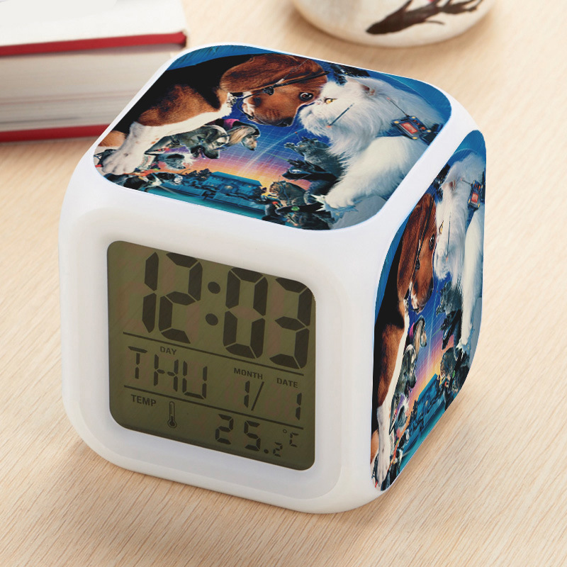 猫犬大戦周辺のカラフルな目覚まし時計を提供します。