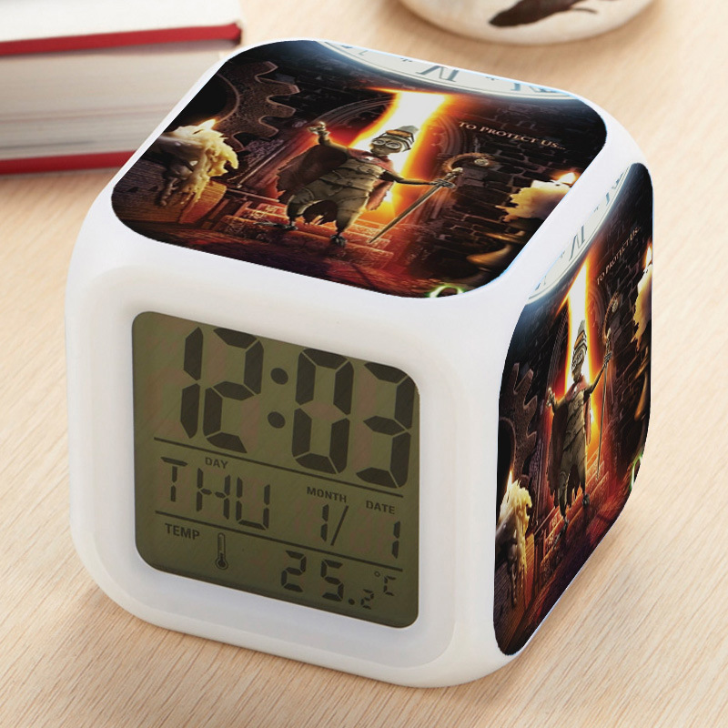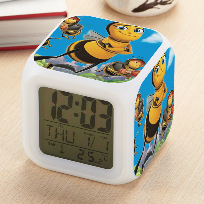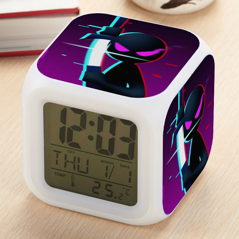 マッチマン周辺のカラフルな目覚まし時計ledデスクトップ静音創意四方鐘アニメ子供小目覚まし時計