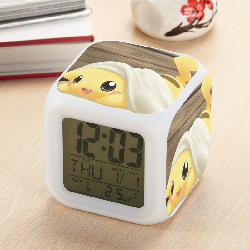 萌えペットピカチュウかわいいカラフルな変色四方鐘ledデスクトップ静音小目覚まし時計クリエイティブ児童目覚まし時計