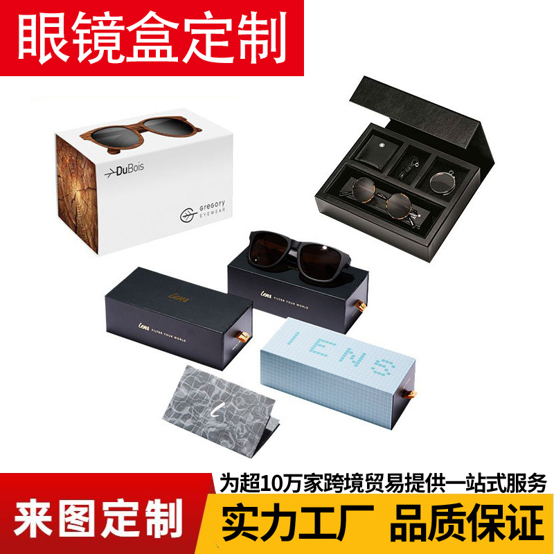 オリジナルメーカーによるビジネス用包装箱のカスタム、小ロットサングラスケース、フリップカバー付きブック型名刺入れ、ギフト用空箱