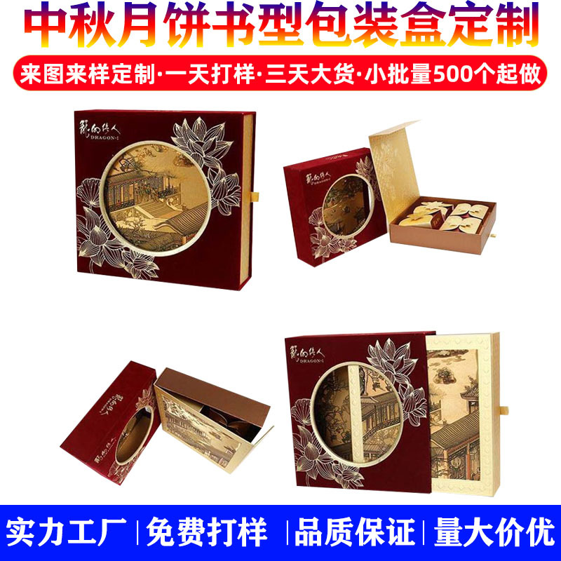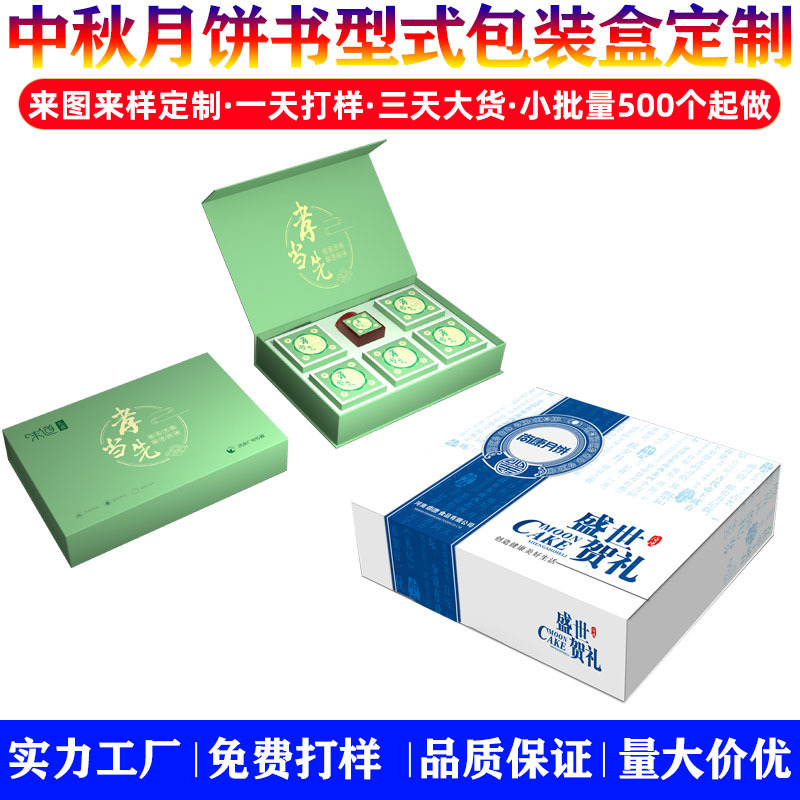 本型月餅箱カスタム高級カバー中秋節プレゼント空箱印刷パターン箔押し磁気吸引包装箱