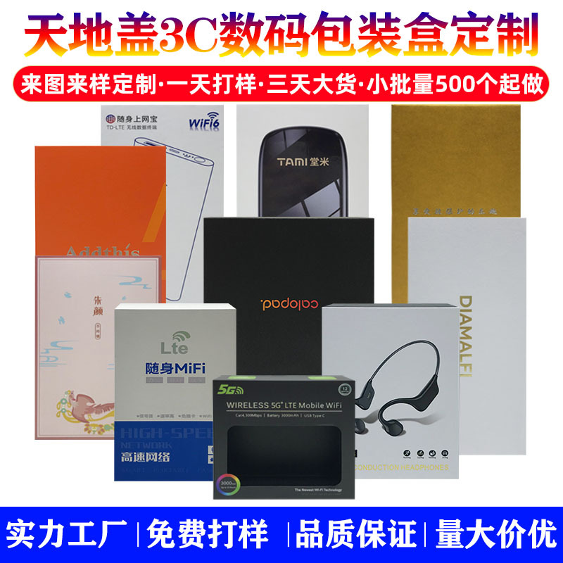 3cデジタル製品包装箱カスタム小ロットwifi充電宝無線bluetoothイヤホン天地蓋箱空箱