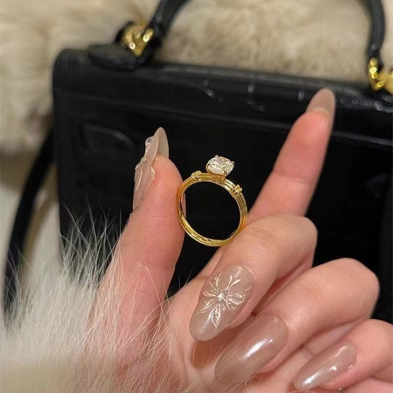 三世の縁の指輪insの高級な軽豪華な手は鳩の卵のダイヤモンドリングの女性の高級感の超仙が白く現れます。