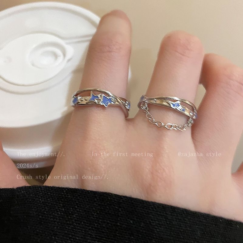 ドーパミンの青い星の世界的な指輪の女性の娘の蜜の五角星の人差指は小さい大衆のカップルの金の1対の指輪を設計します。