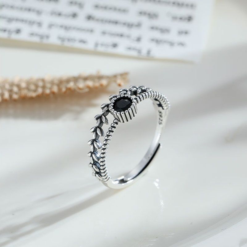 ブラックジルコニウム小麦リング、ハイエンドの個性、トレンディ、軽い贅沢、絶妙なギフト、ガールフレンド、親友、ファッション