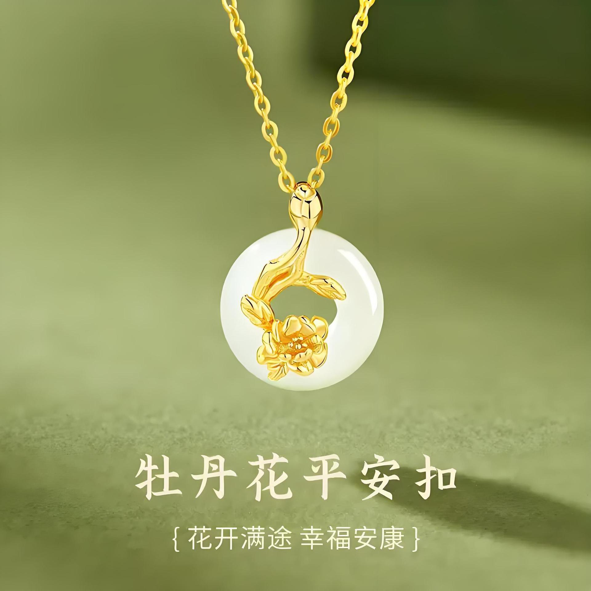 牡丹の花の安全バックルネックレス新しい中国風の鎖骨チェーン多用途ライト高級気質ファッションガールフレンドニッチ