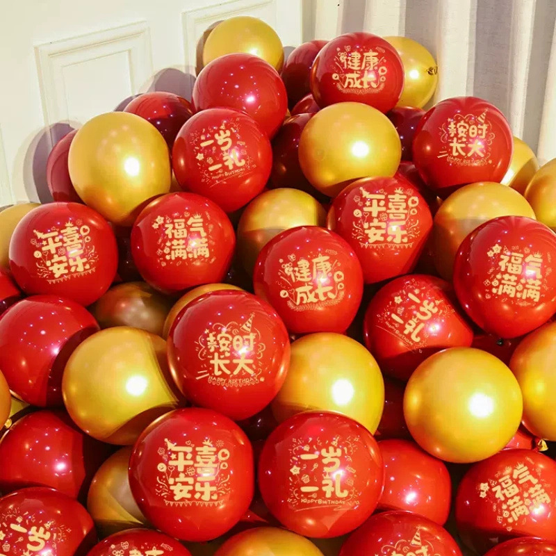 誕生日バルーンアレンジメント 1歳の装飾シーン 子供 赤ちゃん 満月 100日 1歳の赤いパーティー 無毒の背景