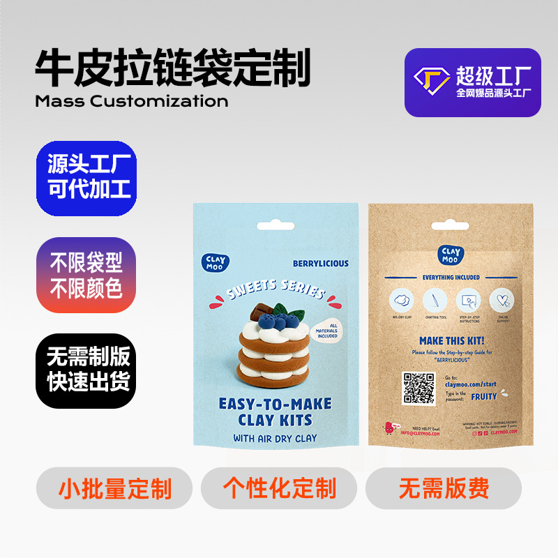 ビスケット包装袋 カスタム牛革紙自立式ジップロック袋 食品スナック密閉袋 カスタム包装