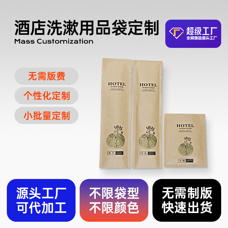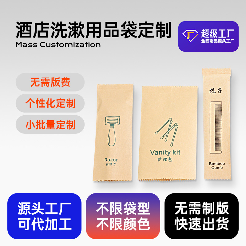 FSC认定使い舍て歯ブラシ歯磨き粉バッグホテル洗面用品包装袋クラフト纸バッググラシン