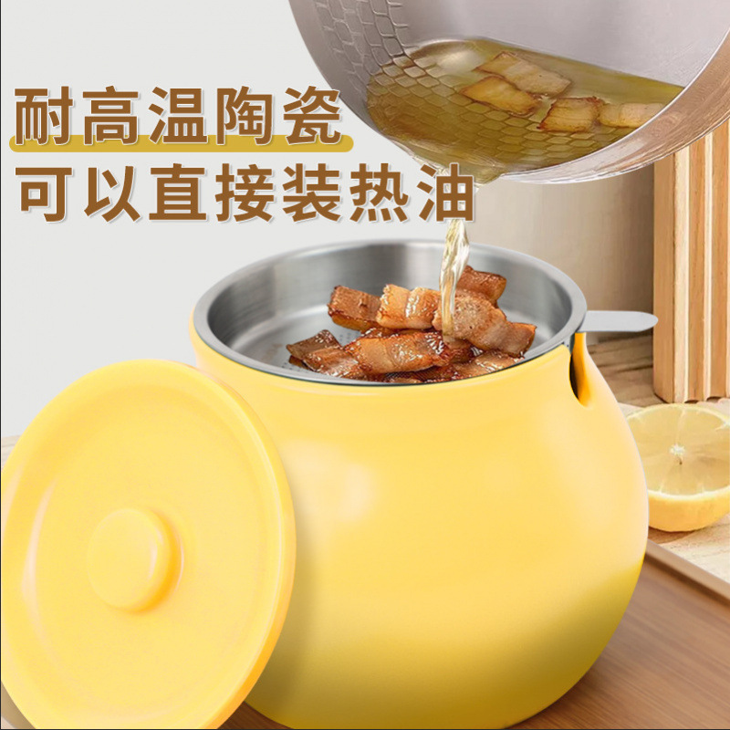 ラード缶家庭用高温耐性セラミック調味料缶食品グレードのオイルスパイシーキャニスターキッチン特別な肉油缶蓋付き
