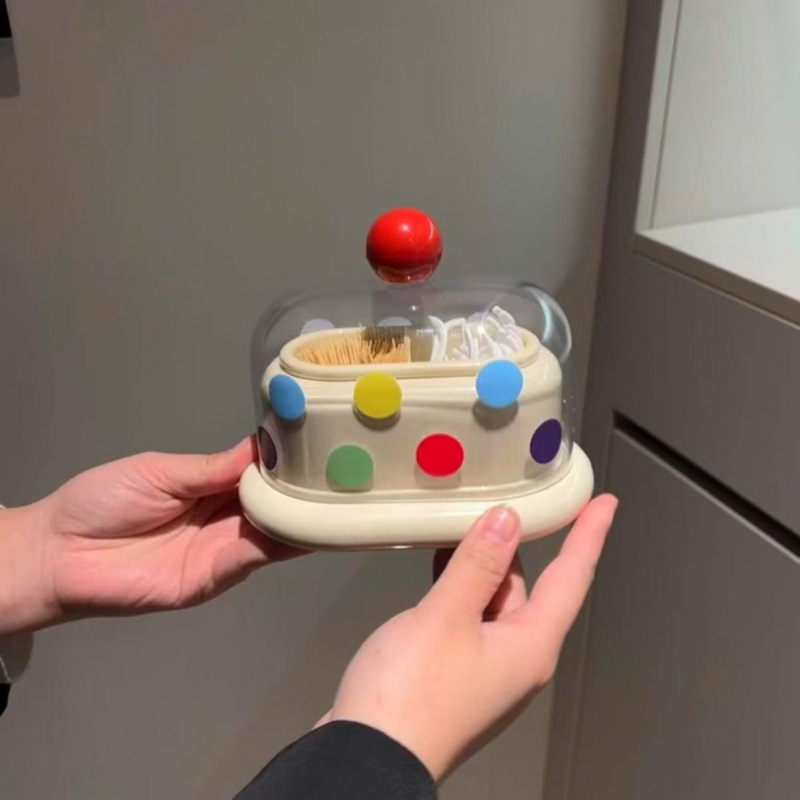 ドーパミンつまようじボックスクリエイティブかわいい水玉模様クリームスタイル綿棒チューブデンタルフロス収納ボックスリビングルームのデスクトップ装飾品