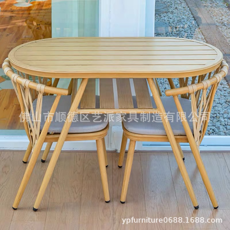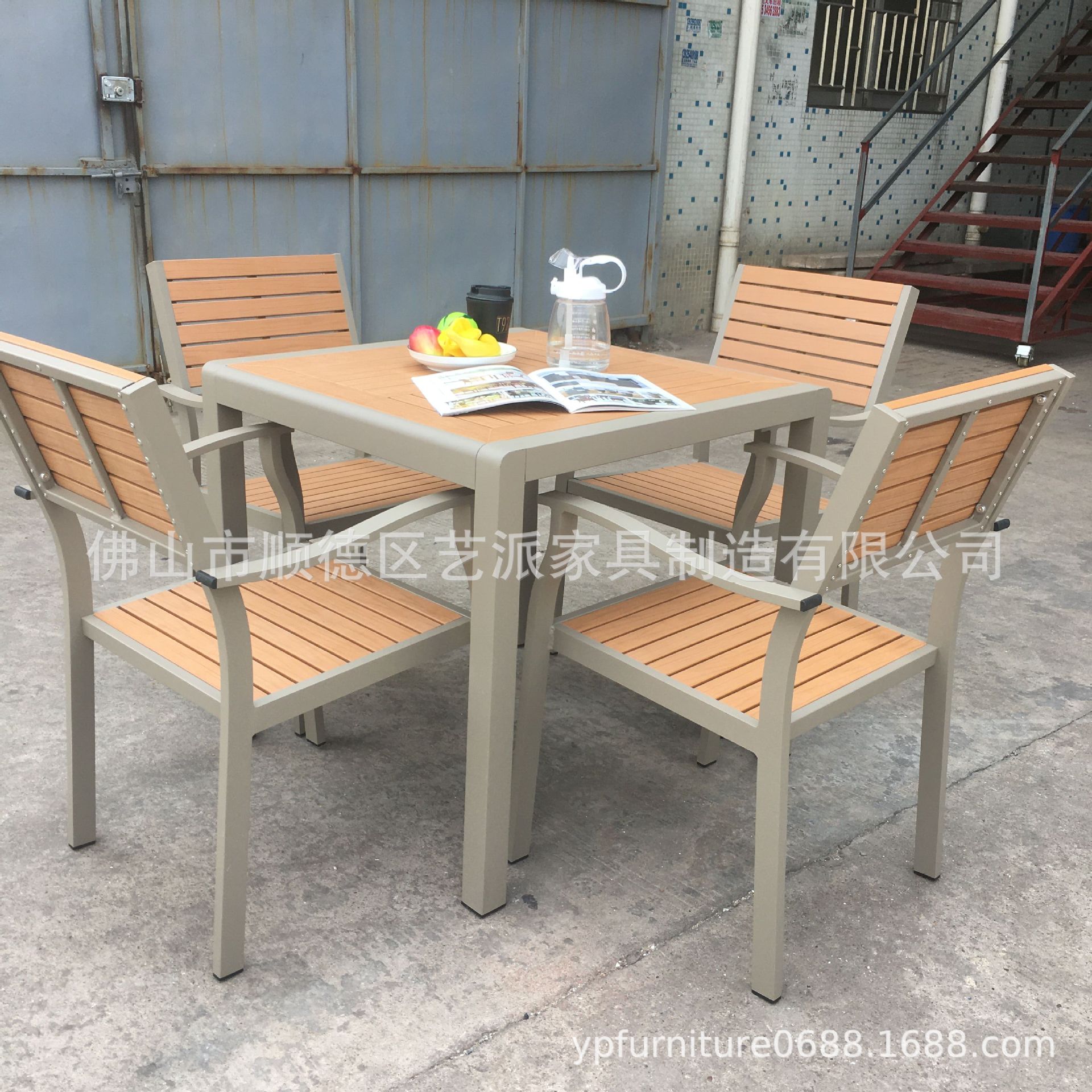 户外桌椅组合铝合金框架塑木可拆装桌椅咖啡店桌椅桌子 家用