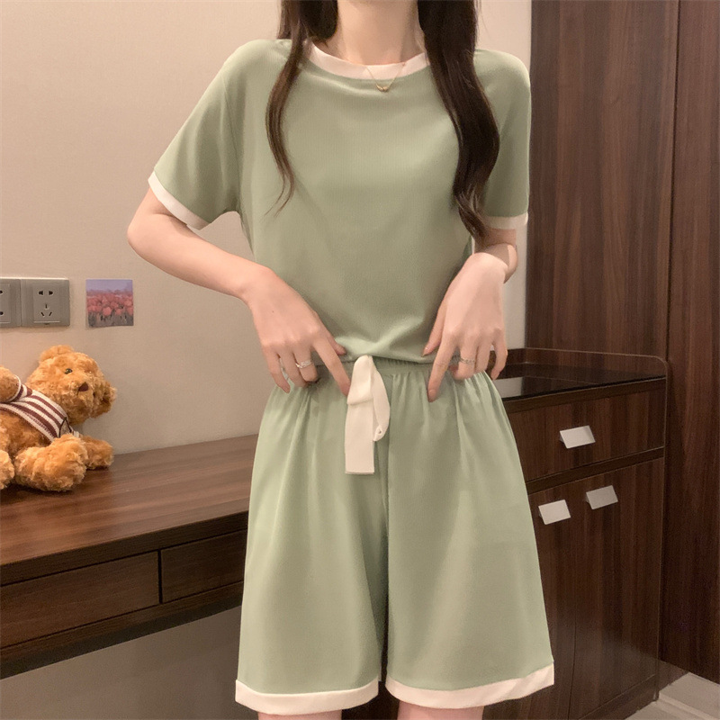 キャンディー色の氷糸パジャマ女性の爆発的なネット赤レジャー新商品の外着薄い半袖半ズボンの家庭服セット
