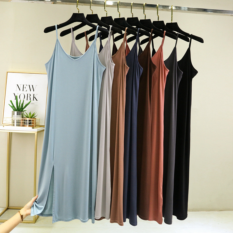 純色のサスペンダーのスカートの眠るスカートの女性の夏の新型のセクシーな中の長いワンピースの家の外でパジャマの薄いタイプの底のスカートを着ます。