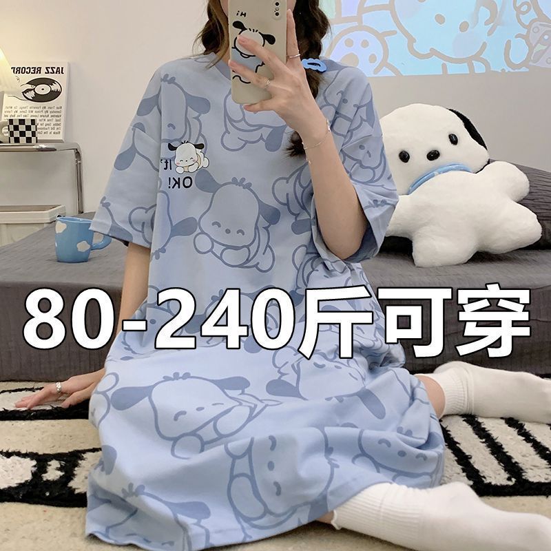 漫画かわいい半袖パジャマレディース夏パジャマプラス太ったプラスサイズゆるい妊婦ミディアムロング2024新作
