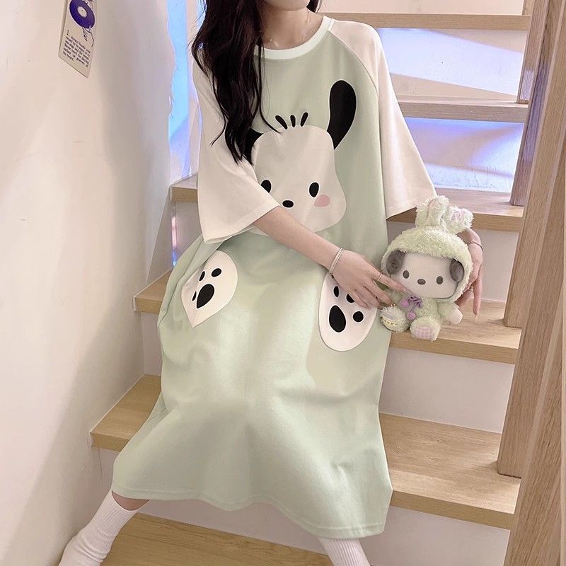 パチャ犬の女性の睡眠スカートの薄いタイプの夏のins風の大きいサイズの漫画のかわいい半袖のカジュアルなパジャマの女性の部屋の服