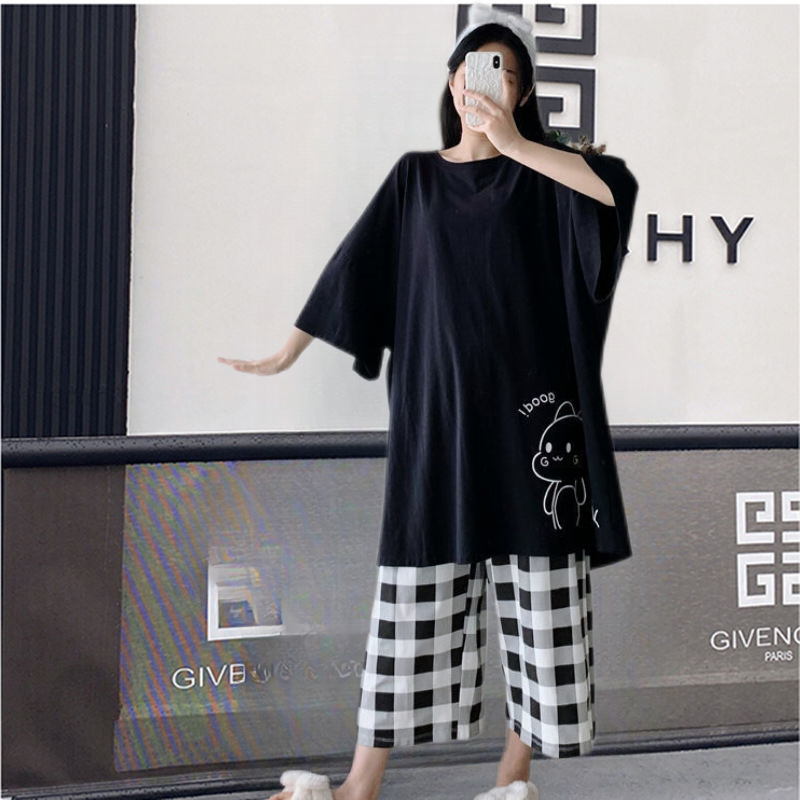 大きいサイズの半袖のtシャツの7分のズボンのスーツの夏の部屋の服の太っている妹の200斤の太っているmmは緩くて太っています。
