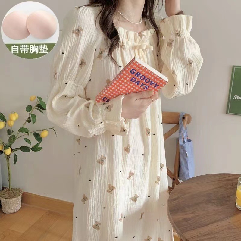 パジャマの秋冬の長いタイプのins風の甘い新型の王女のパジャマのかわいい蝶結びの四角の襟の長袖の部屋の服