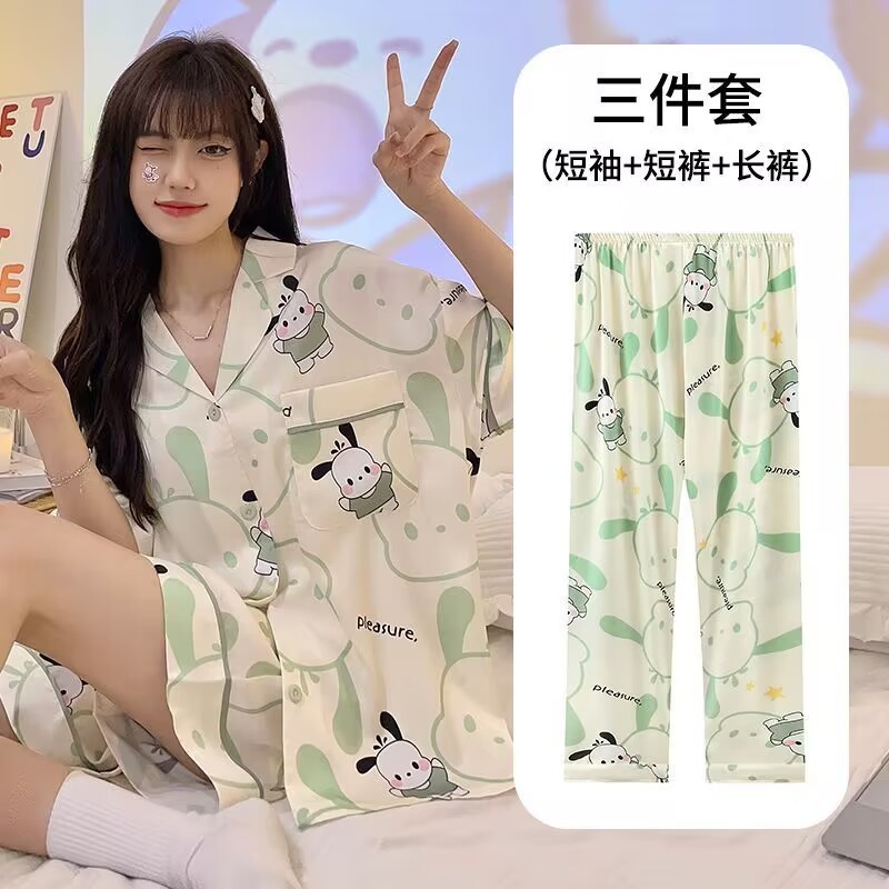 2024新型の甘いパジャマ女性の春と秋の氷の長袖のズボンは家の小さい大衆の居住服のスーツの夏を着ることができます。