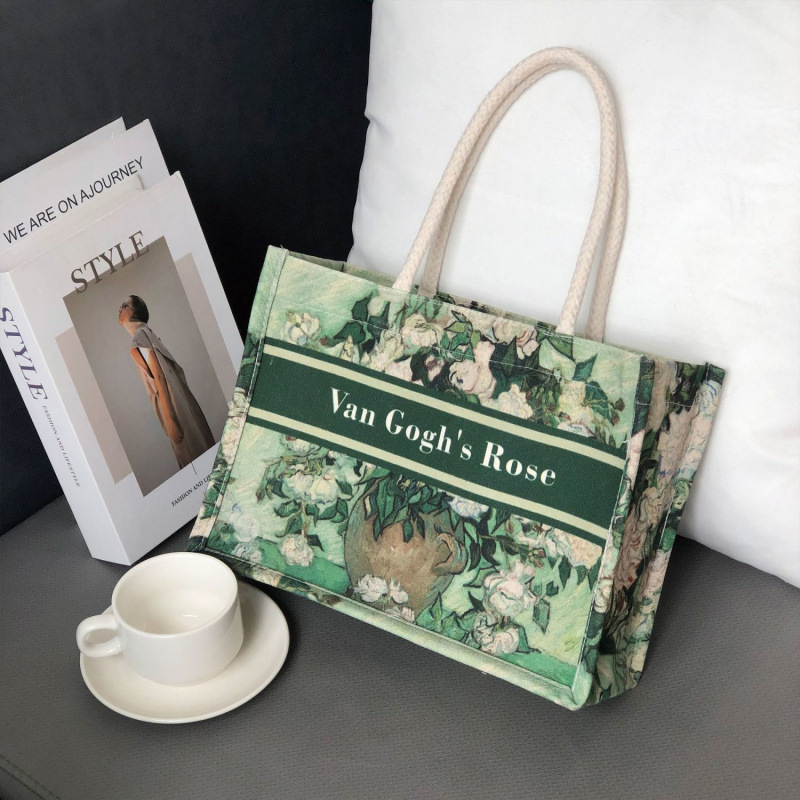 ゴッホ油絵キャンバスバッグ女性ファッション学生手提げ袋大容量布カバン