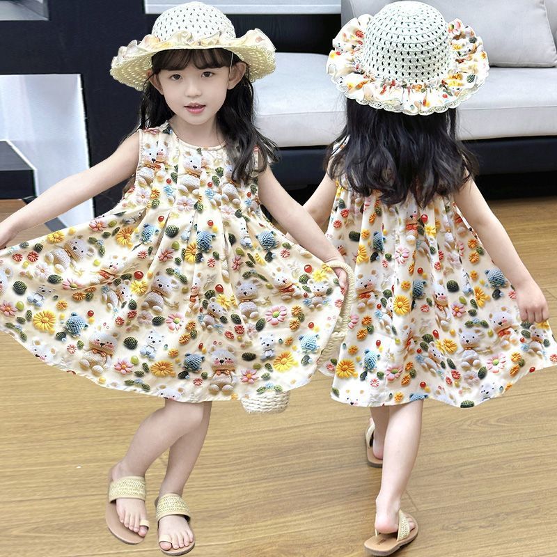 女の子 2025 ドレス新しいスタイル子供の夏の花ベストプリンセスガールスカートサマードレス