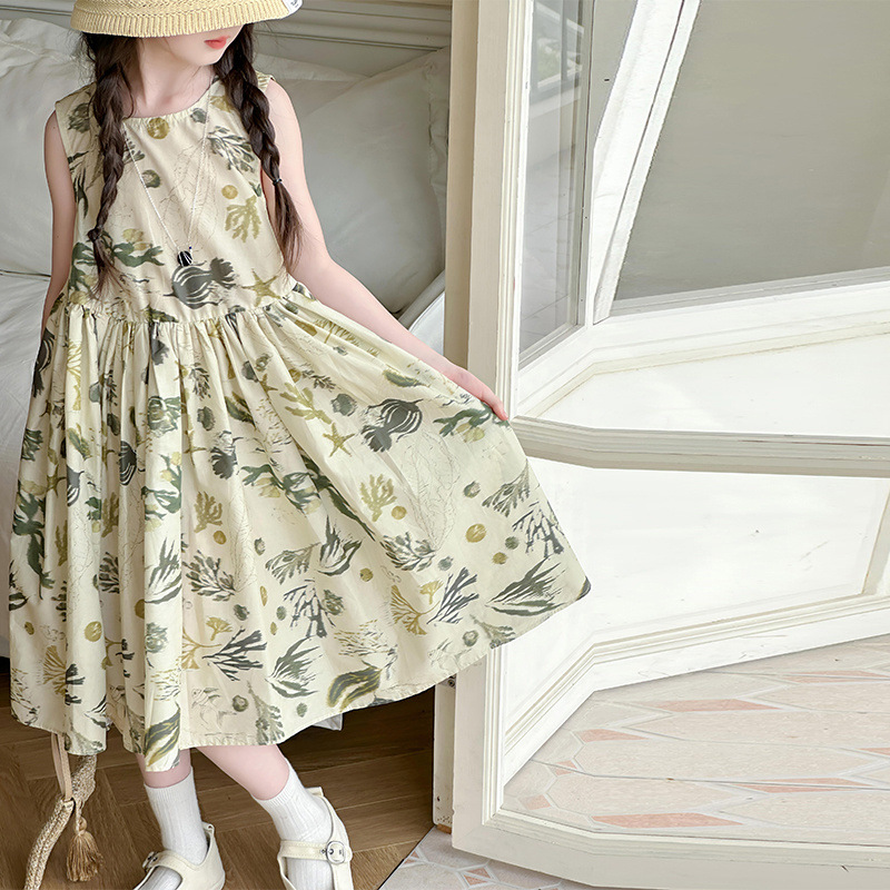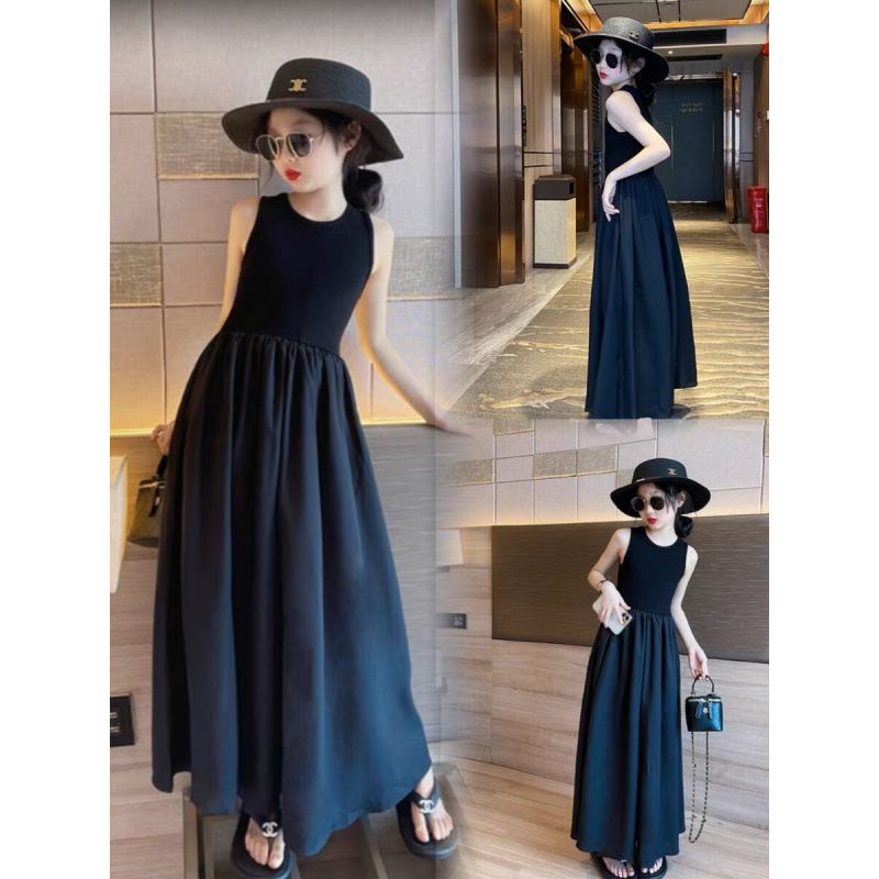 女の子ドレス、夏用子供用リトルブラックドレス、ロングドレス、サマーベストドレス、女の子用おしゃれ子供服ドレス、サマースタイル