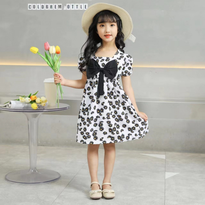 女の子ドレスサマードレス 2022 新しいスタイルベビーブルー花柄プリンセスドレス子供フレンチ半袖ドレス