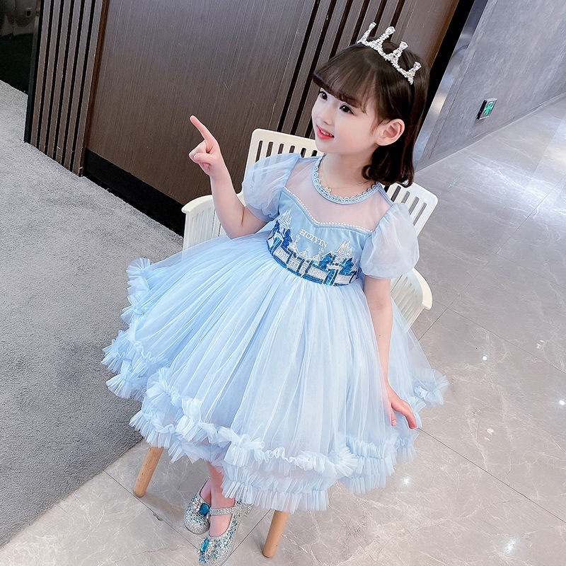 女の子エルサプリンセススカート夏の新しい子供用エルサドレス氷と雪のふわふわガーゼロリータ