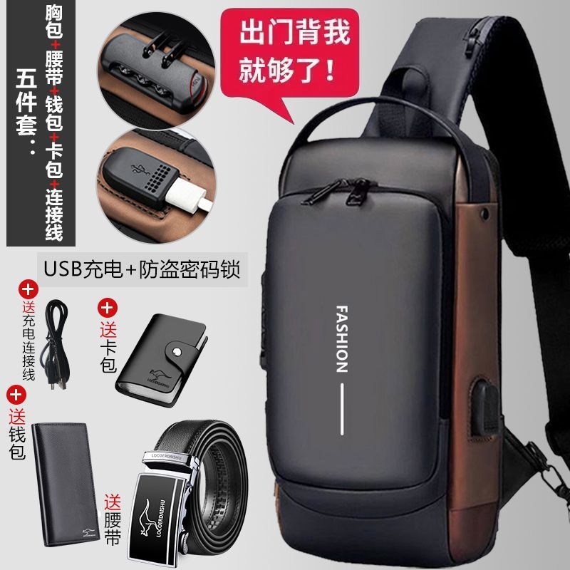 カジュアルメンズメッセンジャーバッグスポーツバックパックチェストバッグパスワードロック盗難防止ショルダー